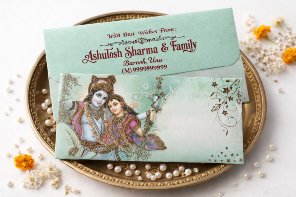 Introducing the Premium Finish Designer Shagun Wedding Envelope, a perfect blend of elegance and tradition. Designed to enhance your wedding invitations, this envelope adds a touch of grandeur to your special occasions. Crafted from high-quality materials, it ensures your invitations are presented in style, making every recipient feel valued.